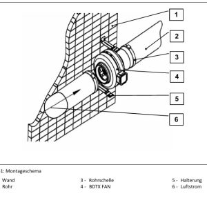 Zusätzlich besitzt der Rohventilator eine Haltevorrichtung um die einfache Montage und Demontage aus Sicherheitsgründen durchzuführen.